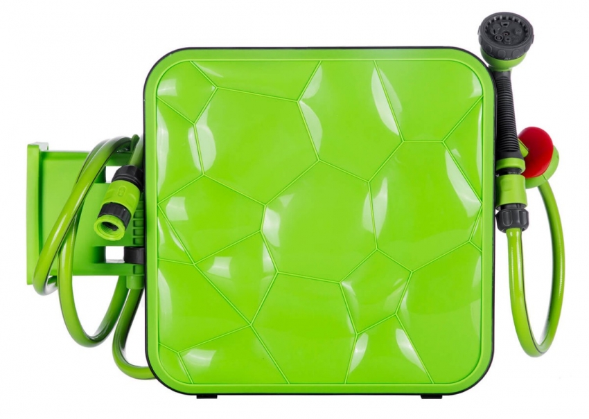 Настенное крепление очень практичное. Оно устроено таким образом, что катушку можно поворачивать на 180 градусов. В процессе полива шланг не перекручивается и не спутывается.