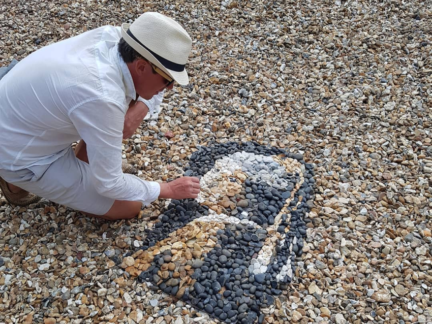 Вдохновленный тибетскими эзотерическими песчаными мандалами и их непостоянством, один британский художник использует природные ландшафты как холст, а камнями разных цветов, форм и оттенков изображает на нем исторических лиц.