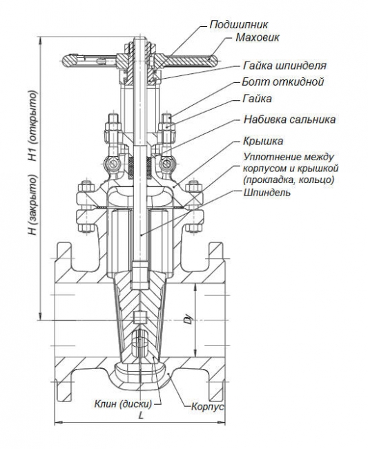 В устройствах клинового типа для перекрывания используется клин. При перекрывании потока он входит между двумя седлами и плотно прижимается к ним, не пропуская жидкость или пар. Существует несколько типов клиновых устройств, которые отличаются между собой прежде всего конструкцией затвора.